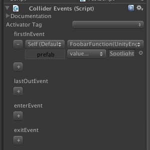「Editor Delegates」は、エディターのGUIでスクリプトの関数を呼び出す物と言えば良いかな。トリガーと成る物は、タイマー、当たり判定、マウスが用意されてます。一定時間毎や辺り判定で何かの動きをすると様な設定をUnity Editor上で設定出来る様になります。といっても関数を呼び出すだけなので、それ自体は自分で書かねば成りません。汎用性のある関数を作って異なるGameObjectにひとつひとつ適用したい場合には便利かも。