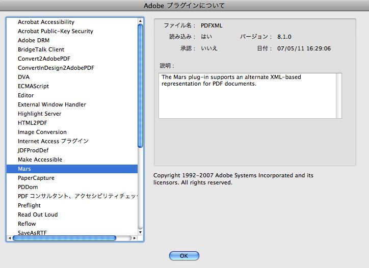 PDFをXMLで出力するPDFXMLのプロジェクトとして「Mars Project」と言うモノがある事を知り、Acrobat 8.1のプラグインをダウンロードして試してみました。以下、そのメモ。